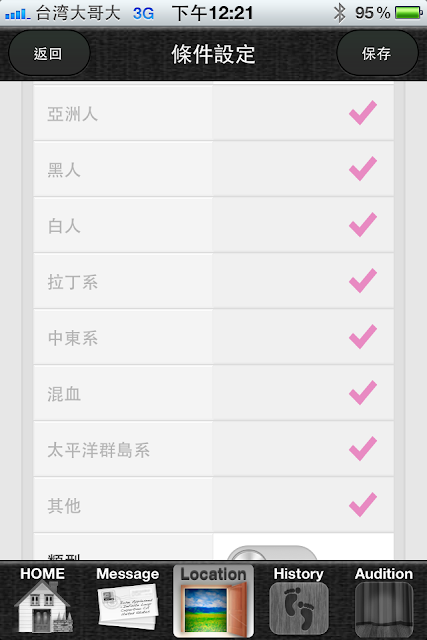 (喜歡的類型一開始會先選好,然後出現在你的個人資料中間。)
