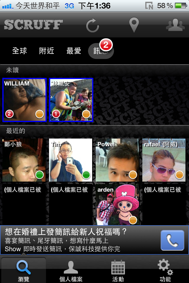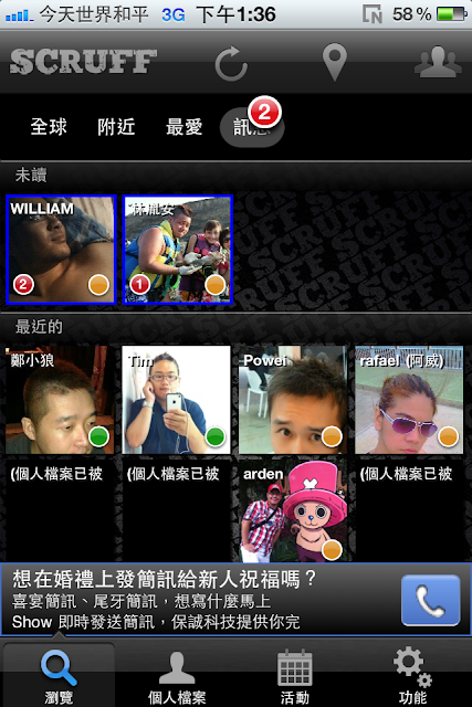 他跟jack'd一樣,可以放三張公開照片及兩張隱私照片,相當方便!